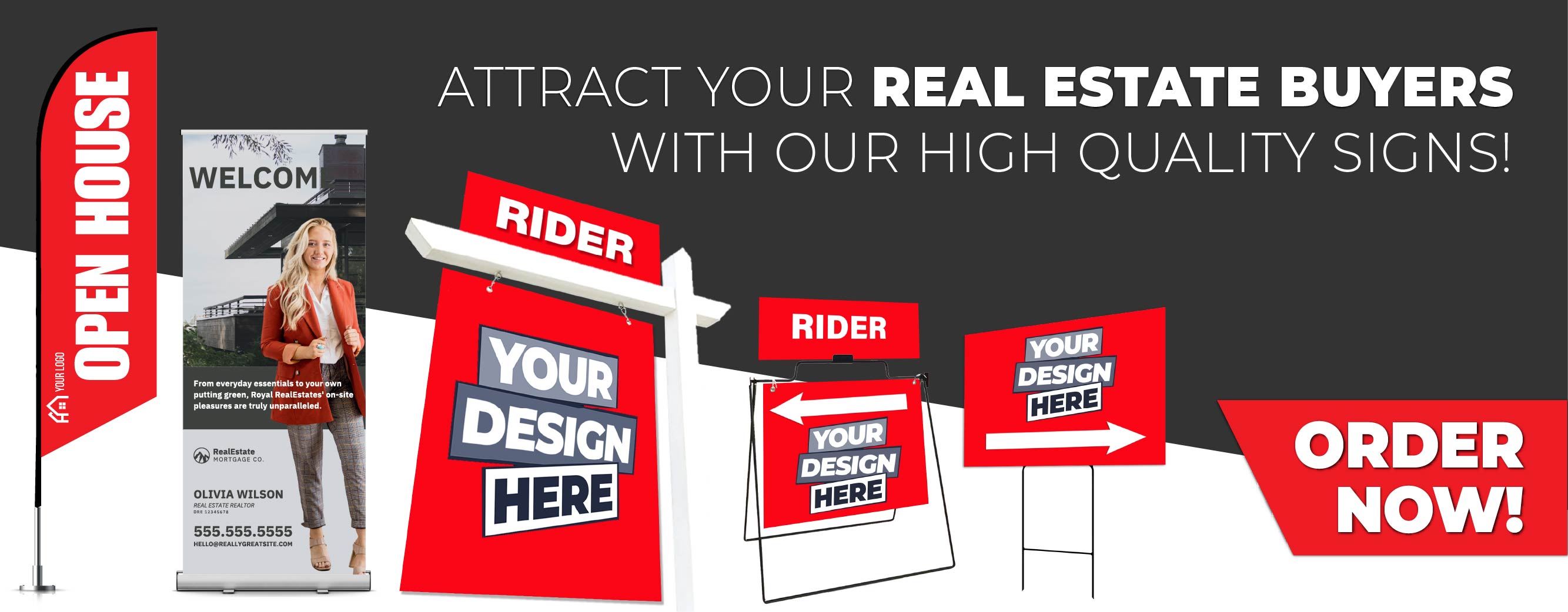 Get potential clients in the door with a sign that stands out. Best Printed Signs can print any design, exactly the way you envisioned it, whether you need open house directional signs, unique real estate signposts, H-frames, or A-frames. We offer printing services using pre-designed templates for many regional and national brands including We also offer printing for Big Block Realty, TXR Homes, Mogul Real Estate, and Century 21 and can print signs for virtually any broker or brand by simply uploading your own custom design. With short lead times, you can begin advertising much faster than with traditional sign-printing companies. Beat the competition by going with the tried-and-true professionals!