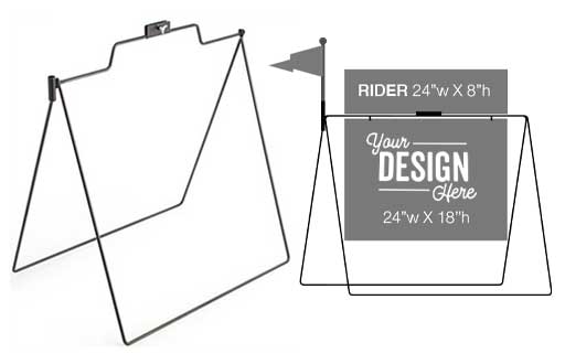 In today's Real Estate market visibility is everything. These Black Steel A-Frame signs are an amazing and inexpensive solution to grab attention. The frame is sized to hold an 24" x 18" double sided coroplast print. It also includes a rider clamp for additional signage.
