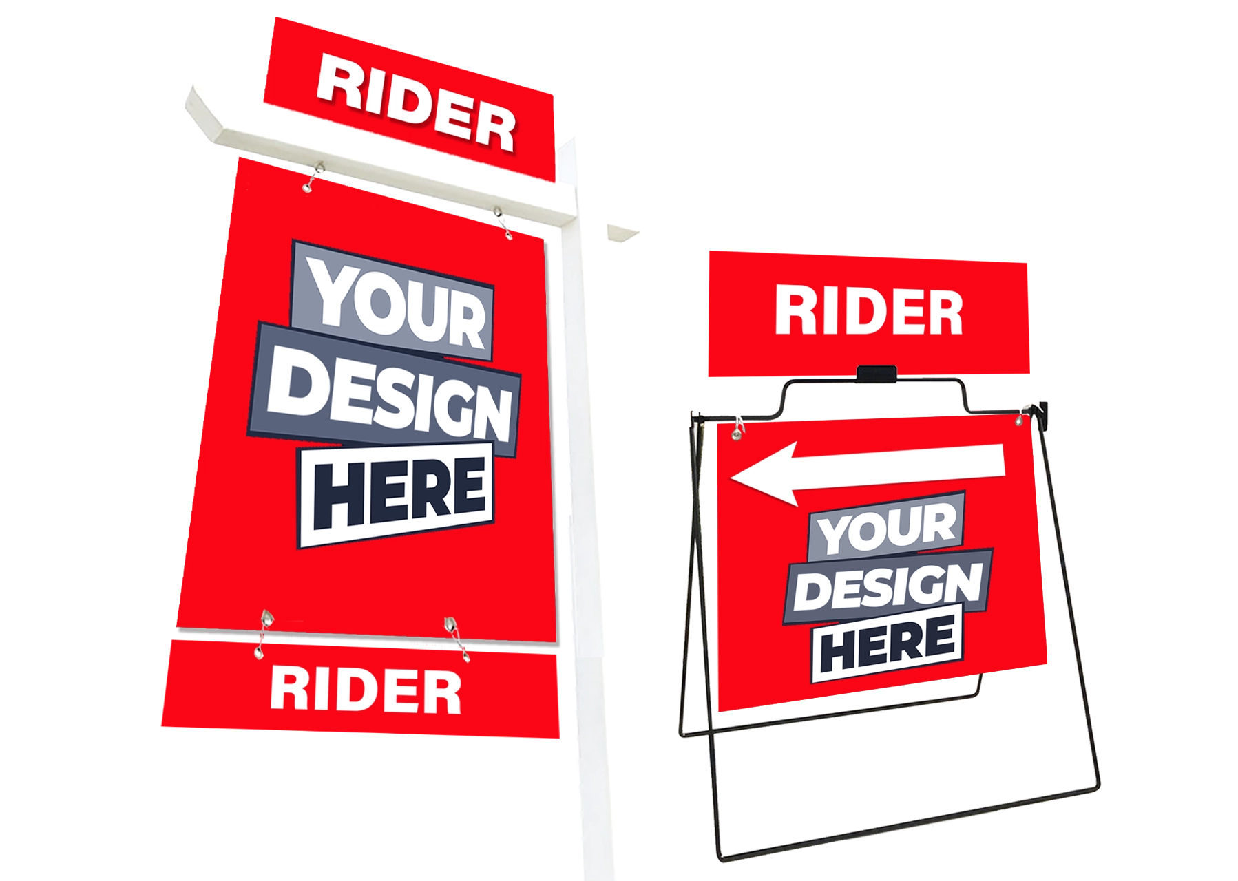 Riders are small add-on messages to display along your For Sale or Open House signs. These signs are great for displaying personal messages and driving traffic to your open house listing. We offer our riders in various sizes and substrates. Our most popular material is 3mm PVC, and most agents can create their own custom messages to make their listing POP! Read More
